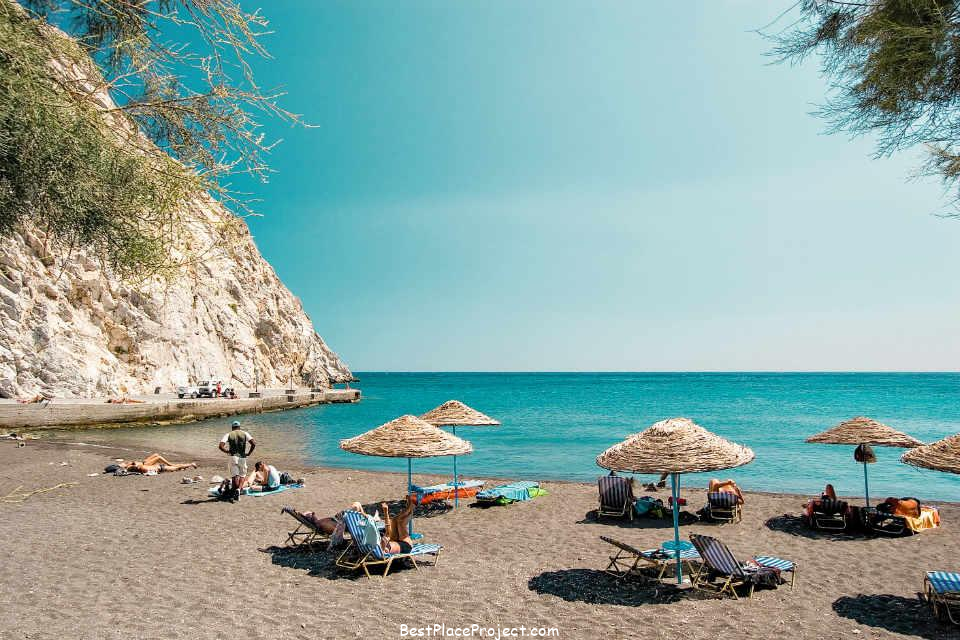 The beach most visited by tourists and partygoers in Santorini is Perissa Beach. Nowhere on the island has the high-energy environment that places like Ios or Mykonos are known for, so the ambience is still equally placed back. Instead, you may anticipate finding affordable hotels and villas, several local restaurants, and some stylish beach clubs. During the busiest time of year, the black pebble beach and its stunning blue waters are packed, but it makes for an amazing atmosphere. Although most of the island’s beaches are likewise black, this location on the southeast coast of Santorini is typically called the island’s “Black Beach.”