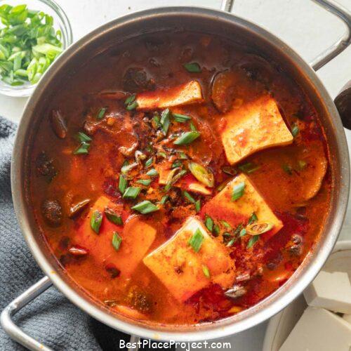 Who doesn’t love a great stew with some healthy vegetables? Sundubu Jjigae is that comfort meal that you need after a long tiring day. It is a flavourful stew made of garlic, gochujang, tofu and other vegetables.