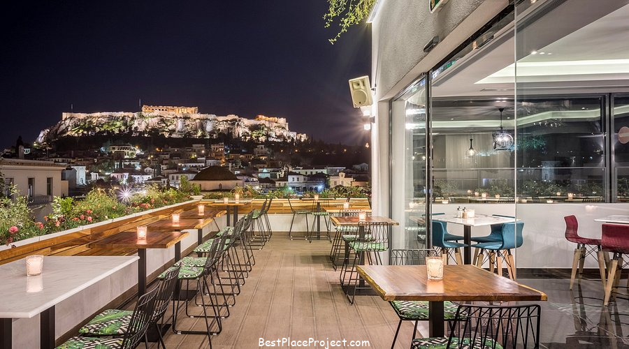 Couleur Locale, located in the center of the city, serves simple, informal food and drinks that are more concerned with the breathtaking views than the bar’s design. Here, you will be surrounded by the activity of a tourist destination. This bar has a sophisticated yet relaxed ambiance, with its classic vintage tile floors, wood-and-tile tables, and quirky mismatched pottery surrounded by plants and greenery. It also has glass walls and a glass roof that provide stunning views of the city from all directions. The design is ultra-modern stylish, and the cuisine and drinks are excellent. But the scenery is what makes it unique. From this location, you can see the Acropolis and historic Plaka.