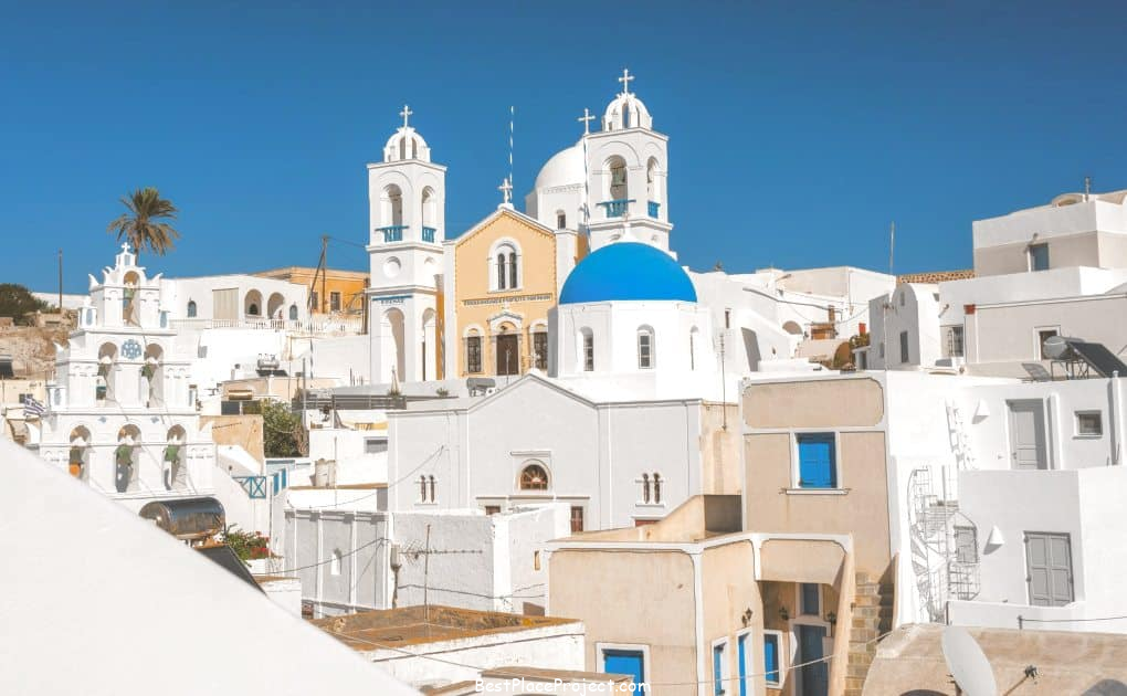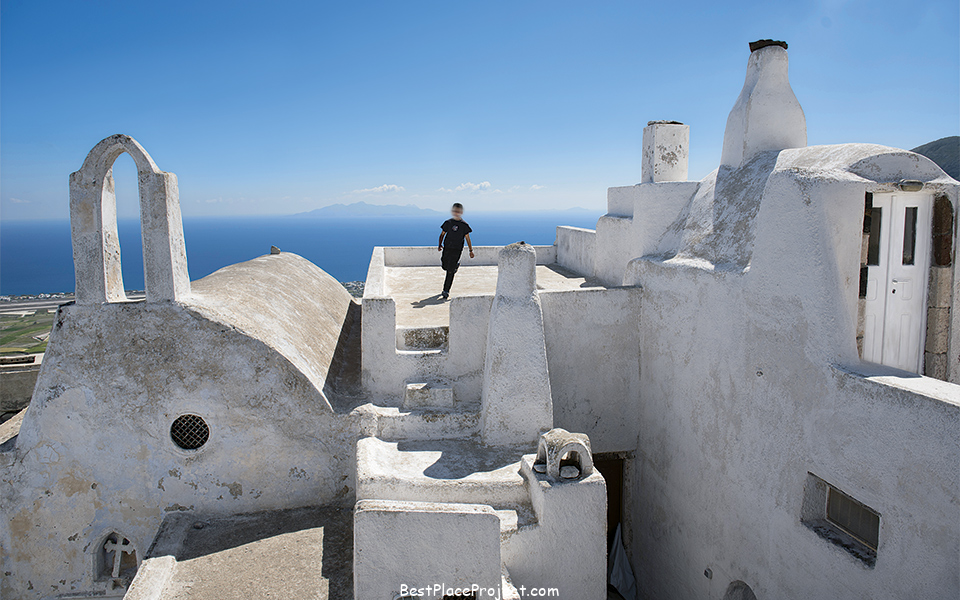 You can see the sunset over the entire island at the Monastery of Profitis Ilias on the opposite end of the island if you don’t mind crowds. Although you can see the Caldera as a whole from up here, you won’t be able to get a close-up look at the Oia Ciffs.